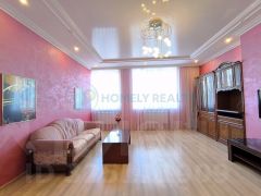 — Планировка: 3 изолированные комнаты (26 + 18 + 18 м²): две спальни и большая гостиная, просторная кухня, два раздельных санузла (ванна + душевая кабина), большая застеклённая лоджия с видом на зелёный двор.