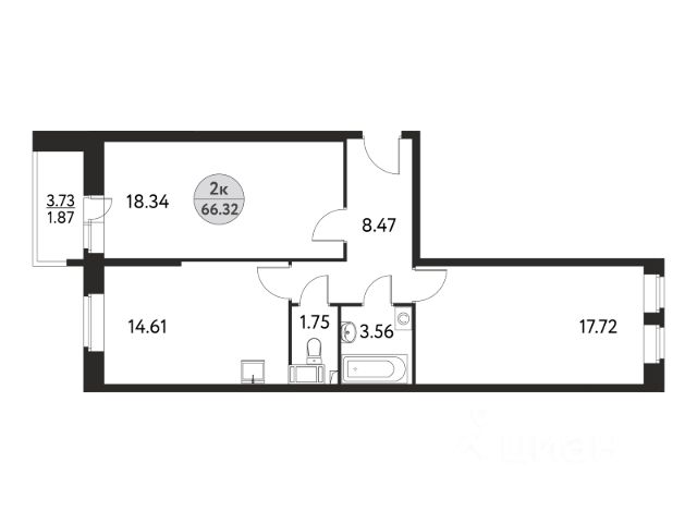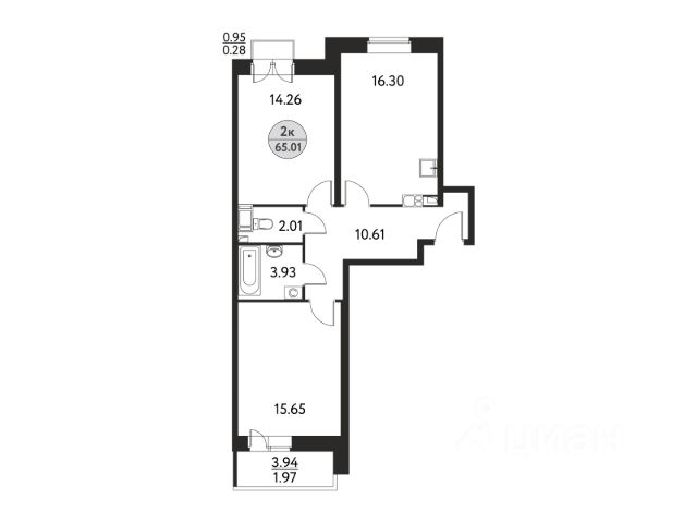 - Два полноценных санузла.