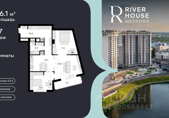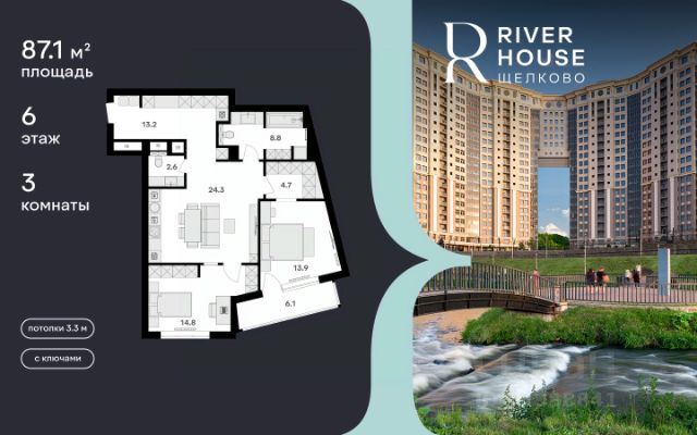 Просторная, светлая семейная квартира в жилом комплексе бизнес-класса RIVER HOUSE Щёлково! Семейная ипотека от 3.5%. Беспроцентная рассрочка. Индивидуальные дисконтные предложения. Дом сдан. Оформление в собственность. Ключи сразу после заключения договора купли-продажи. RIVER HOUSE Щёлково это изысканный жилой проект полноценного бизнес-класса с фокусом на качественное семейное проживание в самом центре города на набережной реки Клязьма. - Оригинальная архитектура, увеличенная площадь остекления, эксклюзивная вечерняя подсветка фасада. - Просторные семейные квартиры с высокими потолками 3.3 м в вариантах черновой, предчистовой и чистовой отделки. - Роскошные трехуровневые пентхаусы с открытыми террасами на кровле. - Лаунж-зона на кровле, где можно устроить уютный вечер с друзьями, отдохнуть и полюбоваться панорамными видами на город. - Вся необходимая инфраструктура и сервисы на первых двух этажах: детский сад, супермаркет, институт красоты, медицинский центр, стоматология, ПВЗ и многое другое. - В каждом подъезде 4 лифта один со спуском в паркинг, лобби с авторским дизайном, консьерж-сервисом и мягкой зоной ожидания. - Круглосуточная охрана, видеонаблюдение, бесключевая система доступа. - Двухуровневый подземный паркинг на 540 машино-мест и 260 кладовых. - Закрытый двор-парк без машин с ландшафтным дизайном, детскими и спортивными площадками, летним амфитеатром и собственным спуском к набережной. - Шаговая доступность ко всей инфраструктуре центра города: школы, детские сады, гимназии, кафе и рестораны, кинотеатр, перинатальный центр. - Три благоустроенных парка, в один из которых - Солнечные часы - можно спуститься со двора дома. RIVER HOUSE Щёлково это дом-впечатление и особый статус, которые останутся вашим детям и станут частью фамильной истории. Продается 3-комнатная квартира с двумя санузлами в Щелково.