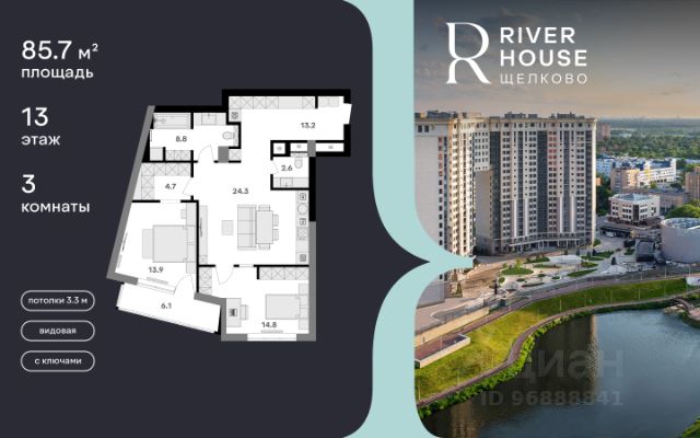 Просторная семейная квартира в жилом комплексе RIVER HOUSE Щёлково. Это изысканный жилой проект премиум-класса с фокусом на качественное семейное проживание в самом центре города на набережной реки Клязьма. Обладает рядом преимуществ, обеспечивающих максимальный комфорт жизни семьи: - Просторный холл с возможностью функциональной организации пространства. - Большая кухня-гостиная для семейных ужинов и приёма гостей. - Высокие потолки 3,3 м - ощущение свободы и воздуха. - Два санузла. Семейная ипотека. Беспроцентная рассрочка. Индивидуальные дисконтные программы. Дом сдан. Оформление в собственность. Ключи сразу после заключения договора купли-продажи. Расположение, транспортная доступность: - Центр Щёлково: напротив дома находится площадь Ленина. - Расстояние до МКАД: 19 км по Щёлковскому шоссе, 40 минут на машине без пробок. - Автобусы и маршрутки - 45-50 минут до метро Щёлковская. - Электропоезд - 10 минут автобусом до ж/д станции Воронок, далее 45 минут до Ярославского вокзала. Комфорт и безопасность: - Круглосуточная охрана, видеонаблюдение, бесключевая система доступа. - Закрытый двор-парк без машин с ландшафтным дизайном, детскими и спортивными площадками. - Двухуровневый подземный паркинг на 540 машиномест и 260 кладовых. Архитектура: - Оригинальная архитектура, увеличенная площадь остекления, эксклюзивная вечерняя подсветка фасада. - Роскошные трехуровневые пентхаусы с открытыми террасами на кровле. - Просторные семейные квартиры с высокими потолками 3.3 м в вариантах черновой, предчистовой и чистовой отделки. Инфраструктура: - На территории комплекса: детский сад, супермаркет, институт красоты, медицинский центр, стоматология, ПВЗ и многое другое. - Собственный спуск к набережной реки Клязьма, выход в благоустроенный парк "Солнечные часы". - Шаговая доступность ко всей инфраструктуре центра города: школы, детские сады, гимназии, кафе и рестораны, кинотеатр. - Лаунж-зона на кровле, где можно устроить уютный вечер с друзьями, отдохнуть и полюбоваться панорамными видами на город. RIVER HOUSE Щёлково - это дом-впечатление и особый статус, которые останутся вашим детям и станут частью фамильной истории. Звоните, чтобы получить консультацию и записаться на просмотр квартиры!