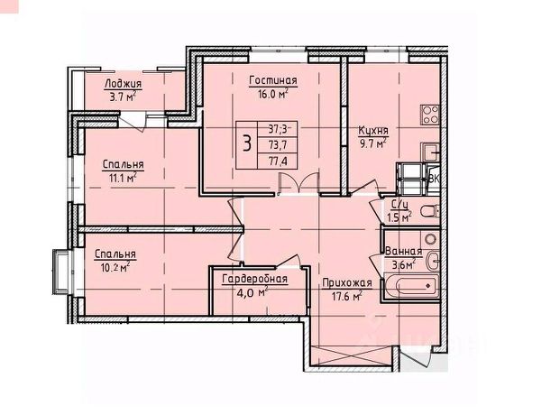 Продаётся 3-комнатная квартира в строящемся доме (Корпус 4), срок сдачи: IV-кв. 2026, общей площадью 77.4 кв.м., на 16 этаже. Расположение, транспортная доступность