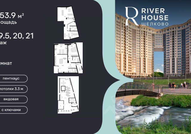 Просторная, светлая семейная квартира в жилом комплексе бизнес-класса RIVER HOUSE Щёлково! Семейная ипотека от 3.5%. Беспроцентная рассрочка. Индивидуальные дисконтные предложения. Дом сдан. Оформление в собственность. Ключи сразу после заключения договора купли-продажи. RIVER HOUSE Щёлково это изысканный жилой проект полноценного бизнес-класса с фокусом на качественное семейное проживание в самом центре города на набережной реки Клязьма. - Оригинальная архитектура, увеличенная площадь остекления, эксклюзивная вечерняя подсветка фасада. - Просторные семейные квартиры с высокими потолками 3.3 м в вариантах черновой, предчистовой и чистовой отделки. - Роскошные трехуровневые пентхаусы с открытыми террасами на кровле. - Лаунж-зона на кровле, где можно устроить уютный вечер с друзьями, отдохнуть и полюбоваться панорамными видами на город. - Вся необходимая инфраструктура и сервисы на первых двух этажах: детский сад, супермаркет, институт красоты, медицинский центр, стоматология, ПВЗ и многое другое. - В каждом подъезде 4 лифта один со спуском в паркинг, лобби с авторским дизайном, консьерж-сервисом и мягкой зоной ожидания. - Круглосуточная охрана, видеонаблюдение, бесключевая система доступа. - Двухуровневый подземный паркинг на 540 машино-мест и 260 кладовых. - Закрытый двор-парк без машин с ландшафтным дизайном, детскими и спортивными площадками, летним амфитеатром и собственным спуском к набережной. - Шаговая доступность ко всей инфраструктуре центра города: школы, детские сады, гимназии, кафе и рестораны, кинотеатр, перинатальный центр. - Три благоустроенных парка, в один из которых - Солнечные часы - можно спуститься со двора дома. RIVER HOUSE Щёлково это дом-впечатление и особый статус, которые останутся вашим детям и станут частью фамильной истории. Купить 3-комнатную квартиру первичка на улице Советская в городе Щелково.