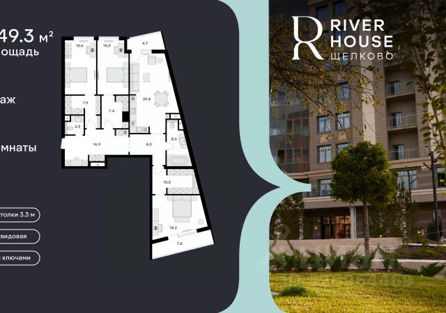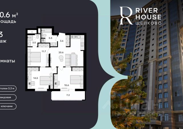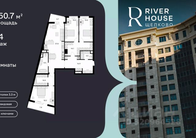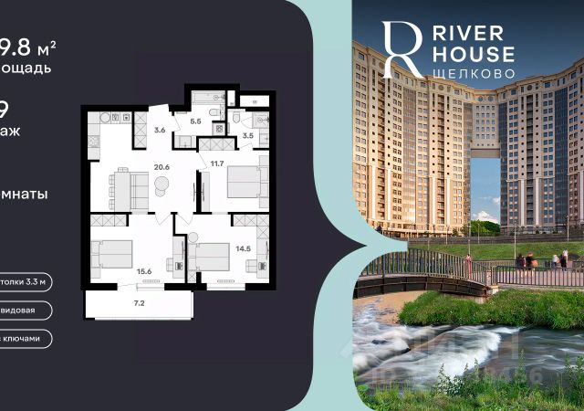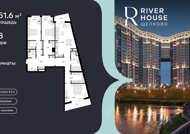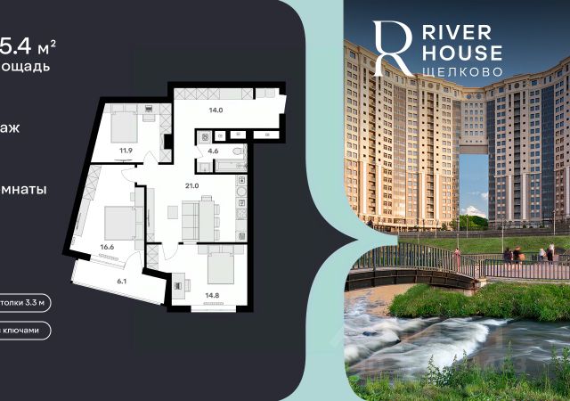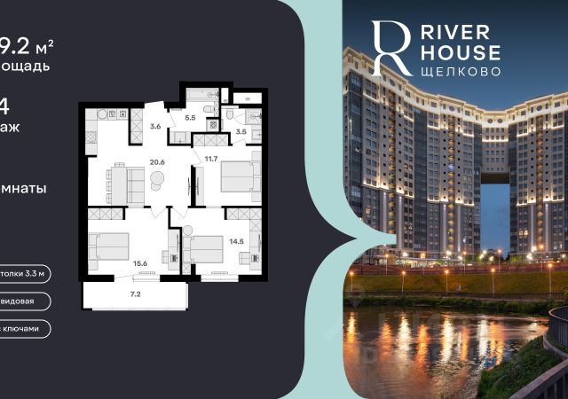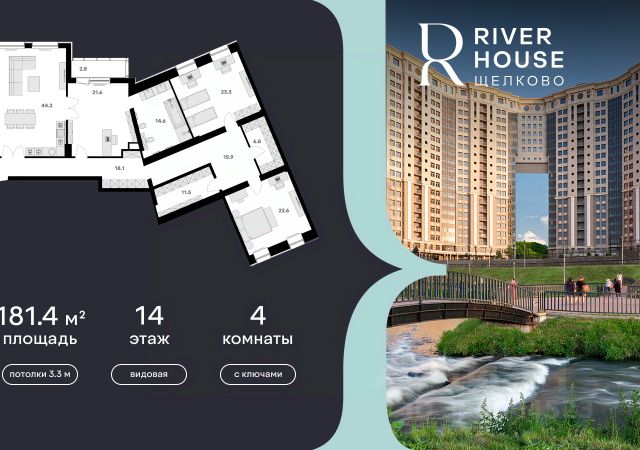 Просторная, светлая семейная квартира в жилом комплексе бизнес-класса RIVER HOUSE Щёлково! Семейная ипотека от 3.5%. Беспроцентная рассрочка. Индивидуальные дисконтные предложения. Дом сдан. Оформление в собственность. Ключи сразу после заключения договора купли-продажи. RIVER HOUSE Щёлково это изысканный жилой проект полноценного бизнес-класса с фокусом на качественное семейное проживание в самом центре города на набережной реки Клязьма. - Оригинальная архитектура, увеличенная площадь остекления, эксклюзивная вечерняя подсветка фасада. - Просторные семейные квартиры с высокими потолками 3.3 м в вариантах черновой, предчистовой и чистовой отделки. - Роскошные трехуровневые пентхаусы с открытыми террасами на кровле. - Лаунж-зона на кровле, где можно устроить уютный вечер с друзьями, отдохнуть и полюбоваться панорамными видами на город. - Вся необходимая инфраструктура и сервисы на первых двух этажах: детский сад, супермаркет, институт красоты, медицинский центр, стоматология, ПВЗ и многое другое. - В каждом подъезде 4 лифта один со спуском в паркинг, лобби с авторским дизайном, консьерж-сервисом и мягкой зоной ожидания. - Круглосуточная охрана, видеонаблюдение, бесключевая система доступа. - Двухуровневый подземный паркинг на 540 машино-мест и 260 кладовых. - Закрытый двор-парк без машин с ландшафтным дизайном, детскими и спортивными площадками, летним амфитеатром и собственным спуском к набережной. - Шаговая доступность ко всей инфраструктуре центра города: школы, детские сады, гимназии, кафе и рестораны, кинотеатр, перинатальный центр. - Три благоустроенных парка, в один из которых - Солнечные часы - можно спуститься со двора дома. RIVER HOUSE Щёлково это дом-впечатление и особый статус, которые останутся вашим детям и станут частью фамильной истории. Купить 4-комнатную квартиру в Щелково.