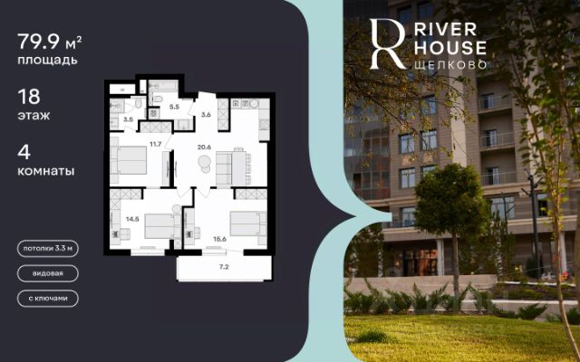 Просторная семейная квартира в жилом комплексе RIVER HOUSE Щёлково. Это изысканный жилой проект премиум-класса с фокусом на качественное семейное проживание в самом центре города на набережной реки Клязьма. Обладает рядом преимуществ, обеспечивающих максимальный комфорт жизни семьи: - Просторный холл с возможностью функциональной организации пространства. - Большая кухня-гостиная для семейных ужинов и приёма гостей. - Высокие потолки 3,3 м - ощущение свободы и воздуха. - Кладовая и гардеробная для удобного хранения. - Два санузла. - Просторная лоджия, где можно обустроить зону отдыха или рабочее место. Семейная ипотека. Беспроцентная рассрочка. Индивидуальные дисконтные программы. Дом сдан. Оформление в собственность. Ключи сразу после заключения договора купли-продажи. Расположение, транспортная доступность: - Центр Щёлково: напротив дома находится площадь Ленина. - Расстояние до МКАД: 19 км по Щёлковскому шоссе, 40 минут на машине без пробок. - Автобусы и маршрутки - 45-50 минут до метро Щёлковская. - Электропоезд - 10 минут автобусом до ж/д станции Воронок, далее 45 минут до Ярославского вокзала. Комфорт и безопасность: - Круглосуточная охрана, видеонаблюдение, бесключевая система доступа. - Закрытый двор-парк без машин с ландшафтным дизайном, детскими и спортивными площадками. - Двухуровневый подземный паркинг на 540 машиномест и 260 кладовых. Архитектура: - Оригинальная архитектура, увеличенная площадь остекления, эксклюзивная вечерняя подсветка фасада. - Роскошные трехуровневые пентхаусы с открытыми террасами на кровле. - Просторные семейные квартиры с высокими потолками 3.3 м в вариантах черновой, предчистовой и чистовой отделки. Инфраструктура: - На территории комплекса: детский сад, супермаркет, институт красоты, медицинский центр, стоматология, ПВЗ и многое другое. - Собственный спуск к набережной реки Клязьма, выход в благоустроенный парк "Солнечные часы". - Шаговая доступность ко всей инфраструктуре центра города: школы, детские сады, гимназии, кафе и рестораны, кинотеатр. - Лаунж-зона на кровле, где можно устроить уютный вечер с друзьями, отдохнуть и полюбоваться панорамными видами на город. RIVER HOUSE Щёлково - это дом-впечатление и особый статус, которые останутся вашим детям и станут частью фамильной истории. Звоните, чтобы получить консультацию и записаться на просмотр квартиры!