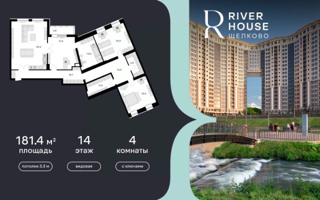 Просторная семейная квартира в жилом комплексе RIVER HOUSE Щёлково. Это изысканный жилой проект премиум-класса с фокусом на качественное семейное проживание в самом центре города на набережной реки Клязьма. Обладает рядом преимуществ, обеспечивающих максимальный комфорт жизни семьи: - Планировка "распашонка" - окна выходят на разные стороны, обеспечивая много света и свежего воздуха. - Просторный холл с возможностью функциональной организации пространства. - Большая кухня-гостиная для семейных ужинов и приёма гостей. - Высокие потолки 3,3 м - ощущение свободы и воздуха. - Кладовая и гардеробная для удобного хранения. - Два санузла. - Две просторные лоджии, где можно обустроить зону отдыха или рабочее место. Семейная ипотека. Беспроцентная рассрочка. Индивидуальные дисконтные программы. Дом сдан. Оформление в собственность. Ключи сразу после заключения договора купли-продажи. Расположение, транспортная доступность: - Центр Щёлково: напротив дома находится площадь Ленина. - Расстояние до МКАД: 19 км по Щёлковскому шоссе, 40 минут на машине без пробок. - Автобусы и маршрутки - 45-50 минут до метро Щёлковская. - Электропоезд - 10 минут автобусом до ж/д станции Воронок, далее 45 минут до Ярославского вокзала. Комфорт и безопасность: - Круглосуточная охрана, видеонаблюдение, бесключевая система доступа. - Закрытый двор-парк без машин с ландшафтным дизайном, детскими и спортивными площадками. - Двухуровневый подземный паркинг на 540 машиномест и 260 кладовых. Архитектура: - Оригинальная архитектура, увеличенная площадь остекления, эксклюзивная вечерняя подсветка фасада. - Роскошные трехуровневые пентхаусы с открытыми террасами на кровле. - Просторные семейные квартиры с высокими потолками 3.3 м в вариантах черновой, предчистовой и чистовой отделки. Инфраструктура: - На территории комплекса: детский сад, супермаркет, институт красоты, медицинский центр, стоматология, ПВЗ и многое другое. - Собственный спуск к набережной реки Клязьма, выход в благоустроенный парк "Солнечные часы". - Шаговая доступность ко всей инфраструктуре центра города: школы, детские сады, гимназии, кафе и рестораны, кинотеатр. - Лаунж-зона на кровле, где можно устроить уютный вечер с друзьями, отдохнуть и полюбоваться панорамными видами на город. RIVER HOUSE Щёлково - это дом-впечатление и особый статус, которые останутся вашим детям и станут частью фамильной истории. Звоните, чтобы получить консультацию и записаться на просмотр квартиры!