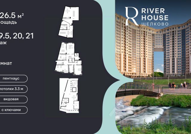 Просторная, светлая семейная квартира в жилом комплексе бизнес-класса RIVER HOUSE Щёлково! Семейная ипотека от 3.5%. Беспроцентная рассрочка. Индивидуальные дисконтные предложения. Дом сдан. Оформление в собственность. Ключи сразу после заключения договора купли-продажи. RIVER HOUSE Щёлково это изысканный жилой проект полноценного бизнес-класса с фокусом на качественное семейное проживание в самом центре города на набережной реки Клязьма. - Оригинальная архитектура, увеличенная площадь остекления, эксклюзивная вечерняя подсветка фасада. - Просторные семейные квартиры с высокими потолками 3.3 м в вариантах черновой, предчистовой и чистовой отделки. - Роскошные трехуровневые пентхаусы с открытыми террасами на кровле. - Лаунж-зона на кровле, где можно устроить уютный вечер с друзьями, отдохнуть и полюбоваться панорамными видами на город. - Вся необходимая инфраструктура и сервисы на первых двух этажах: детский сад, супермаркет, институт красоты, медицинский центр, стоматология, ПВЗ и многое другое. - В каждом подъезде 4 лифта один со спуском в паркинг, лобби с авторским дизайном, консьерж-сервисом и мягкой зоной ожидания. - Круглосуточная охрана, видеонаблюдение, бесключевая система доступа. - Двухуровневый подземный паркинг на 540 машино-мест и 260 кладовых. - Закрытый двор-парк без машин с ландшафтным дизайном, детскими и спортивными площадками, летним амфитеатром и собственным спуском к набережной. - Шаговая доступность ко всей инфраструктуре центра города: школы, детские сады, гимназии, кафе и рестораны, кинотеатр, перинатальный центр. - Три благоустроенных парка, в один из которых - Солнечные часы - можно спуститься со двора дома. RIVER HOUSE Щёлково это дом-впечатление и особый статус, которые останутся вашим детям и станут частью фамильной истории.