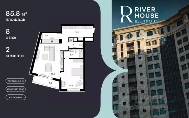 Просторная семейная квартира в жилом комплексе RIVER HOUSE Щёлково. Это изысканный жилой проект премиум-класса с фокусом на качественное семейное проживание в самом центре города на набережной реки Клязьма. Обладает рядом преимуществ, обеспечивающих максимальный комфорт жизни семьи: - Просторный холл с возможностью функциональной организации пространства. - Большая кухня-гостиная для семейных ужинов и приёма гостей. - Высокие потолки 3,3 м - ощущение свободы и воздуха. - Кладовая и гардеробная для удобного хранения. - Два полноценных санузла. - Большая лоджия, где можно обустроить зону отдыха или рабочее место. Семейная ипотека. Беспроцентная рассрочка. Индивидуальные дисконтные программы. Дом сдан. Оформление в собственность. Ключи сразу после заключения договора купли-продажи. Расположение, транспортная доступность: - Центр Щёлково: напротив дома находится площадь Ленина. - Расстояние до МКАД: 19 км по Щёлковскому шоссе, 40 минут на машине без пробок. - Автобусы и маршрутки - 45-50 минут до метро Щёлковская. - Электропоезд - 10 минут автобусом до ж/д станции Воронок, далее 45 минут до Ярославского вокзала. Комфорт и безопасность: - Круглосуточная охрана, видеонаблюдение, бесключевая система доступа. - Закрытый двор-парк без машин с ландшафтным дизайном, детскими и спортивными площадками. - Двухуровневый подземный паркинг на 540 машиномест и 260 кладовых. Архитектура: - Оригинальная архитектура, увеличенная площадь остекления, эксклюзивная вечерняя подсветка фасада. - Роскошные трехуровневые пентхаусы с открытыми террасами на кровле. - Просторные семейные квартиры с высокими потолками 3.3 м в вариантах черновой, предчистовой и чистовой отделки. Инфраструктура: - На территории комплекса: детский сад, супермаркет, институт красоты, медицинский центр, стоматология, ПВЗ и многое другое. - Собственный спуск к набережной реки Клязьма, выход в благоустроенный парк "Солнечные часы". - Шаговая доступность ко всей инфраструктуре центра города: школы, детские сады, гимназии, кафе и рестораны, кинотеатр. - Лаунж-зона на кровле, где можно устроить уютный вечер с друзьями, отдохнуть и полюбоваться панорамными видами на город. RIVER HOUSE Щёлково - это дом-впечатление и особый статус, которые останутся вашим детям и станут частью фамильной истории. Звоните, чтобы получить консультацию и записаться на просмотр квартиры!