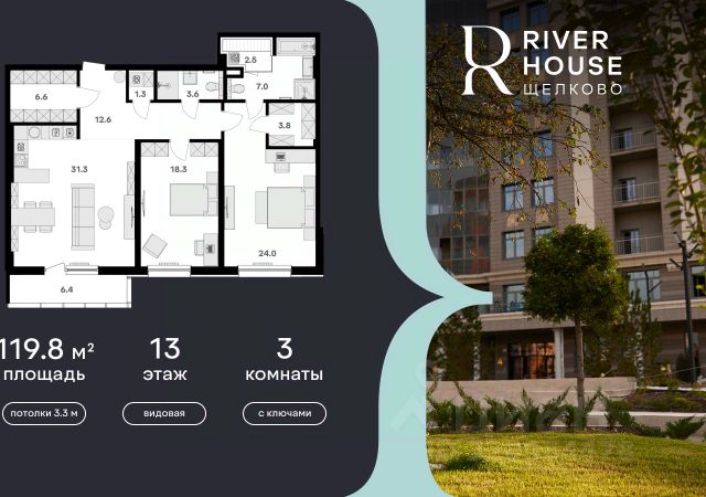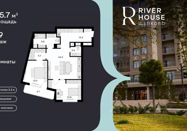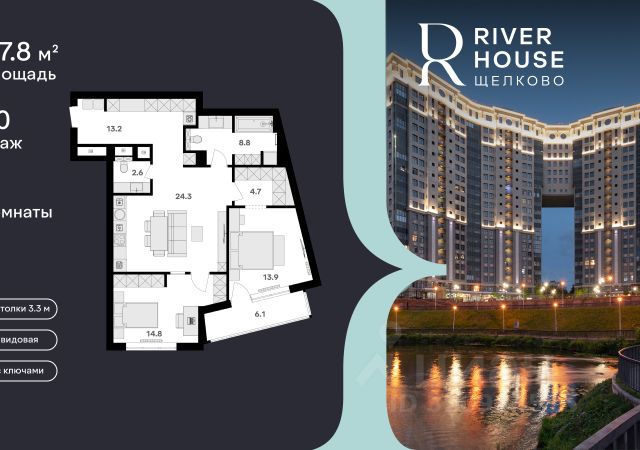 Просторная, светлая семейная квартира в жилом комплексе бизнес-класса RIVER HOUSE Щёлково! Семейная ипотека от 3.5%. Беспроцентная рассрочка. Индивидуальные дисконтные предложения. Дом сдан. Оформление в собственность. Ключи сразу после заключения договора купли-продажи. RIVER HOUSE Щёлково это изысканный жилой проект полноценного бизнес-класса с фокусом на качественное семейное проживание в самом центре города на набережной реки Клязьма. - Оригинальная архитектура, увеличенная площадь остекления, эксклюзивная вечерняя подсветка фасада. - Просторные семейные квартиры с высокими потолками 3.3 м в вариантах черновой, предчистовой и чистовой отделки. - Роскошные трехуровневые пентхаусы с открытыми террасами на кровле. - Лаунж-зона на кровле, где можно устроить уютный вечер с друзьями, отдохнуть и полюбоваться панорамными видами на город. - Вся необходимая инфраструктура и сервисы на первых двух этажах: детский сад, супермаркет, институт красоты, медицинский центр, стоматология, ПВЗ и многое другое. - В каждом подъезде 4 лифта один со спуском в паркинг, лобби с авторским дизайном, консьерж-сервисом и мягкой зоной ожидания. - Круглосуточная охрана, видеонаблюдение, бесключевая система доступа. - Двухуровневый подземный паркинг на 540 машино-мест и 260 кладовых. - Закрытый двор-парк без машин с ландшафтным дизайном, детскими и спортивными площадками, летним амфитеатром и собственным спуском к набережной. - Шаговая доступность ко всей инфраструктуре центра города: школы, детские сады, гимназии, кафе и рестораны, кинотеатр, перинатальный центр. - Три благоустроенных парка, в один из которых - Солнечные часы - можно спуститься со двора дома. RIVER HOUSE Щёлково это дом-впечатление и особый статус, которые останутся вашим детям и станут частью фамильной истории.