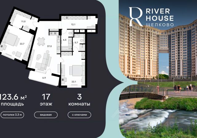 Просторная, светлая семейная квартира в жилом комплексе бизнес-класса RIVER HOUSE Щёлково! Семейная ипотека от 3.5%. Беспроцентная рассрочка. Индивидуальные дисконтные предложения. Дом сдан. Оформление в собственность. Ключи сразу после заключения договора купли-продажи. RIVER HOUSE Щёлково это изысканный жилой проект полноценного бизнес-класса с фокусом на качественное семейное проживание в самом центре города на набережной реки Клязьма. - Оригинальная архитектура, увеличенная площадь остекления, эксклюзивная вечерняя подсветка фасада. - Просторные семейные квартиры с высокими потолками 3.3 м в вариантах черновой, предчистовой и чистовой отделки. - Роскошные трехуровневые пентхаусы с открытыми террасами на кровле. - Лаунж-зона на кровле, где можно устроить уютный вечер с друзьями, отдохнуть и полюбоваться панорамными видами на город. - Вся необходимая инфраструктура и сервисы на первых двух этажах: детский сад, супермаркет, институт красоты, медицинский центр, стоматология, ПВЗ и многое другое. - В каждом подъезде 4 лифта один со спуском в паркинг, лобби с авторским дизайном, консьерж-сервисом и мягкой зоной ожидания. - Круглосуточная охрана, видеонаблюдение, бесключевая система доступа. - Двухуровневый подземный паркинг на 540 машино-мест и 260 кладовых. - Закрытый двор-парк без машин с ландшафтным дизайном, детскими и спортивными площадками, летним амфитеатром и собственным спуском к набережной. - Шаговая доступность ко всей инфраструктуре центра города: школы, детские сады, гимназии, кафе и рестораны, кинотеатр, перинатальный центр. - Три благоустроенных парка, в один из которых - Солнечные часы - можно спуститься со двора дома. RIVER HOUSE Щёлково это дом-впечатление и особый статус, которые останутся вашим детям и станут частью фамильной истории. Квартира в Щелковском районе Московской области.