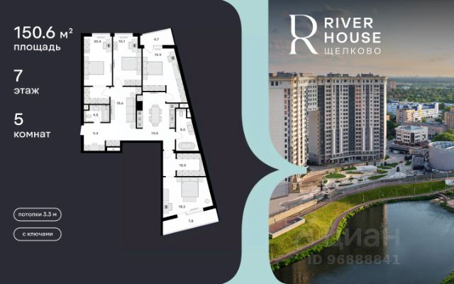 Просторная семейная квартира в жилом комплексе RIVER HOUSE Щёлково. Это изысканный жилой проект премиум-класса с фокусом на качественное семейное проживание в самом центре города на набережной реки Клязьма. Обладает рядом преимуществ, обеспечивающих максимальный комфорт жизни семьи: - Просторный холл с возможностью функциональной организации пространства. - Большая кухня-гостиная для семейных ужинов и приёма гостей. - Высокие потолки 3,3 м - ощущение свободы и воздуха. - Кладовая и гардеробная для удобного хранения. - Два санузла. - Просторная лоджия, где можно обустроить зону отдыха или рабочее место. Семейная ипотека. Беспроцентная рассрочка. Индивидуальные дисконтные программы. Дом сдан. Оформление в собственность. Ключи сразу после заключения договора купли-продажи. Расположение, транспортная доступность: - Центр Щёлково: напротив дома находится площадь Ленина. - Расстояние до МКАД: 19 км по Щёлковскому шоссе, 40 минут на машине без пробок. - Автобусы и маршрутки - 45-50 минут до метро Щёлковская. - Электропоезд - 10 минут автобусом до ж/д станции Воронок, далее 45 минут до Ярославского вокзала. Комфорт и безопасность: - Круглосуточная охрана, видеонаблюдение, бесключевая система доступа. - Закрытый двор-парк без машин с ландшафтным дизайном, детскими и спортивными площадками. - Двухуровневый подземный паркинг на 540 машиномест и 260 кладовых. Архитектура: - Оригинальная архитектура, увеличенная площадь остекления, эксклюзивная вечерняя подсветка фасада. - Роскошные трехуровневые пентхаусы с открытыми террасами на кровле. - Просторные семейные квартиры с высокими потолками 3.3 м в вариантах черновой, предчистовой и чистовой отделки. Инфраструктура: - На территории комплекса: детский сад, супермаркет, институт красоты, медицинский центр, стоматология, ПВЗ и многое другое. - Собственный спуск к набережной реки Клязьма, выход в благоустроенный парк "Солнечные часы". - Шаговая доступность ко всей инфраструктуре центра города: школы, детские сады, гимназии, кафе и рестораны, кинотеатр. - Лаунж-зона на кровле, где можно устроить уютный вечер с друзьями, отдохнуть и полюбоваться панорамными видами на город. RIVER HOUSE Щёлково - это дом-впечатление и особый статус, которые останутся вашим детям и станут частью фамильной истории. Звоните, чтобы получить консультацию и записаться на просмотр квартиры! Продам квартиру с отделкой от застройщика в Щелковском районе Московской области.
