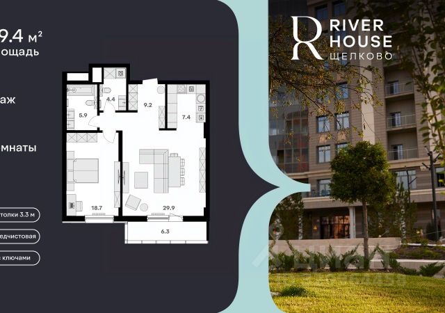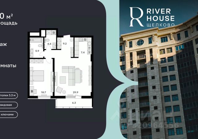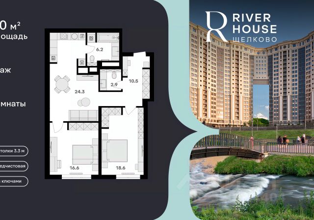 Просторная, светлая семейная квартира с предчистовой отделкой в жилом комплексе бизнес-класса RIVER HOUSE Щёлково! Семейная ипотека от 3.5%. Беспроцентная рассрочка. Индивидуальные дисконтные предложения. Дом сдан. Оформление в собственность. Ключи сразу после заключения договора купли-продажи. RIVER HOUSE Щёлково это изысканный жилой проект полноценного бизнес-класса с фокусом на качественное семейное проживание в самом центре города на набережной реки Клязьма. - Оригинальная архитектура, увеличенная площадь остекления, эксклюзивная вечерняя подсветка фасада. - Просторные семейные квартиры с высокими потолками 3.3 м в вариантах черновой, предчистовой и чистовой отделки. - Роскошные трехуровневые пентхаусы с открытыми террасами на кровле. - Лаунж-зона на кровле, где можно устроить уютный вечер с друзьями, отдохнуть и полюбоваться панорамными видами на город. - Вся необходимая инфраструктура и сервисы на первых двух этажах: детский сад, супермаркет, институт красоты, медицинский центр, стоматология, ПВЗ и многое другое. - В каждом подъезде 4 лифта один со спуском в паркинг, лобби с авторским дизайном, консьерж-сервисом и мягкой зоной ожидания. - Круглосуточная охрана, видеонаблюдение, бесключевая система доступа. - Двухуровневый подземный паркинг на 540 машино-мест и 260 кладовых. - Закрытый двор-парк без машин с ландшафтным дизайном, детскими и спортивными площадками, летним амфитеатром и собственным спуском к набережной. - Шаговая доступность ко всей инфраструктуре центра города: школы, детские сады, гимназии, кафе и рестораны, кинотеатр, перинатальный центр. - Три благоустроенных парка, в один из которых - Солнечные часы - можно спуститься со двора дома. RIVER HOUSE Щёлково это дом-впечатление и особый статус, которые останутся вашим детям и станут частью фамильной истории. Купить квартиру с отделкой в Щелково.