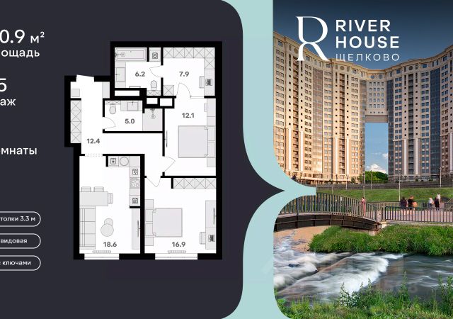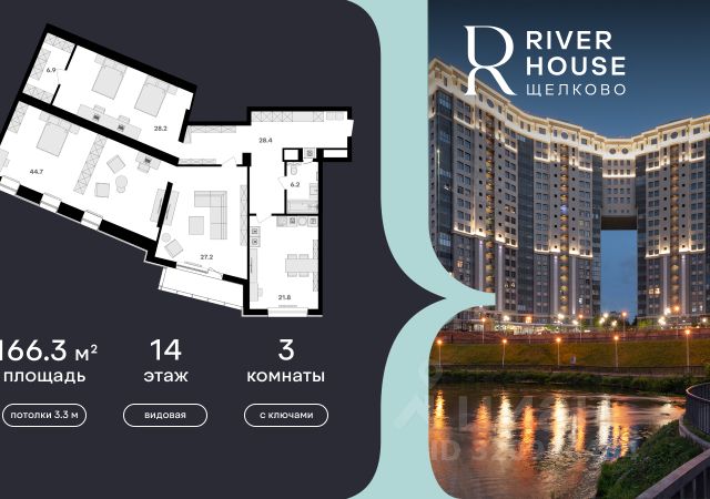 Просторная, светлая семейная квартира с предчистовой отделкой в жилом комплексе бизнес-класса RIVER HOUSE Щёлково! Семейная ипотека от 3.5%. Беспроцентная рассрочка. Индивидуальные дисконтные предложения. Дом сдан. Оформление в собственность. Ключи сразу после заключения договора купли-продажи. RIVER HOUSE Щёлково это изысканный жилой проект полноценного бизнес-класса с фокусом на качественное семейное проживание в самом центре города на набережной реки Клязьма. - Оригинальная архитектура, увеличенная площадь остекления, эксклюзивная вечерняя подсветка фасада. - Просторные семейные квартиры с высокими потолками 3.3 м в вариантах черновой, предчистовой и чистовой отделки. - Роскошные трехуровневые пентхаусы с открытыми террасами на кровле. - Лаунж-зона на кровле, где можно устроить уютный вечер с друзьями, отдохнуть и полюбоваться панорамными видами на город. - Вся необходимая инфраструктура и сервисы на первых двух этажах: детский сад, супермаркет, институт красоты, медицинский центр, стоматология, ПВЗ и многое другое. - В каждом подъезде 4 лифта один со спуском в паркинг, лобби с авторским дизайном, консьерж-сервисом и мягкой зоной ожидания. - Круглосуточная охрана, видеонаблюдение, бесключевая система доступа. - Двухуровневый подземный паркинг на 540 машино-мест и 260 кладовых. - Закрытый двор-парк без машин с ландшафтным дизайном, детскими и спортивными площадками, летним амфитеатром и собственным спуском к набережной. - Шаговая доступность ко всей инфраструктуре центра города: школы, детские сады, гимназии, кафе и рестораны, кинотеатр, перинатальный центр. - Три благоустроенных парка, в один из которых - Солнечные часы - можно спуститься со двора дома. RIVER HOUSE Щёлково это дом-впечатление и особый статус, которые останутся вашим детям и станут частью фамильной истории.