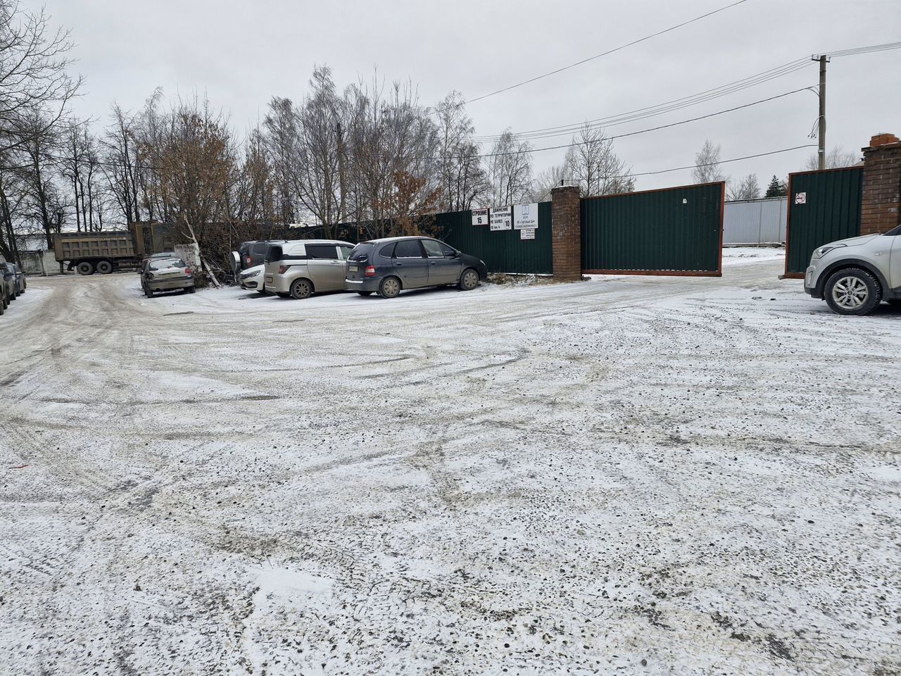 Участок огорожен, с круглосуточной физической охраной, видеонаблюдение, освещение, электричество, вода, канализация. Большая часть участка покрытие асфальт, крошка. ( можно оставшуюся часть тоже быстро покрыть.) Участок и подъезды к нему чистятся от снега.