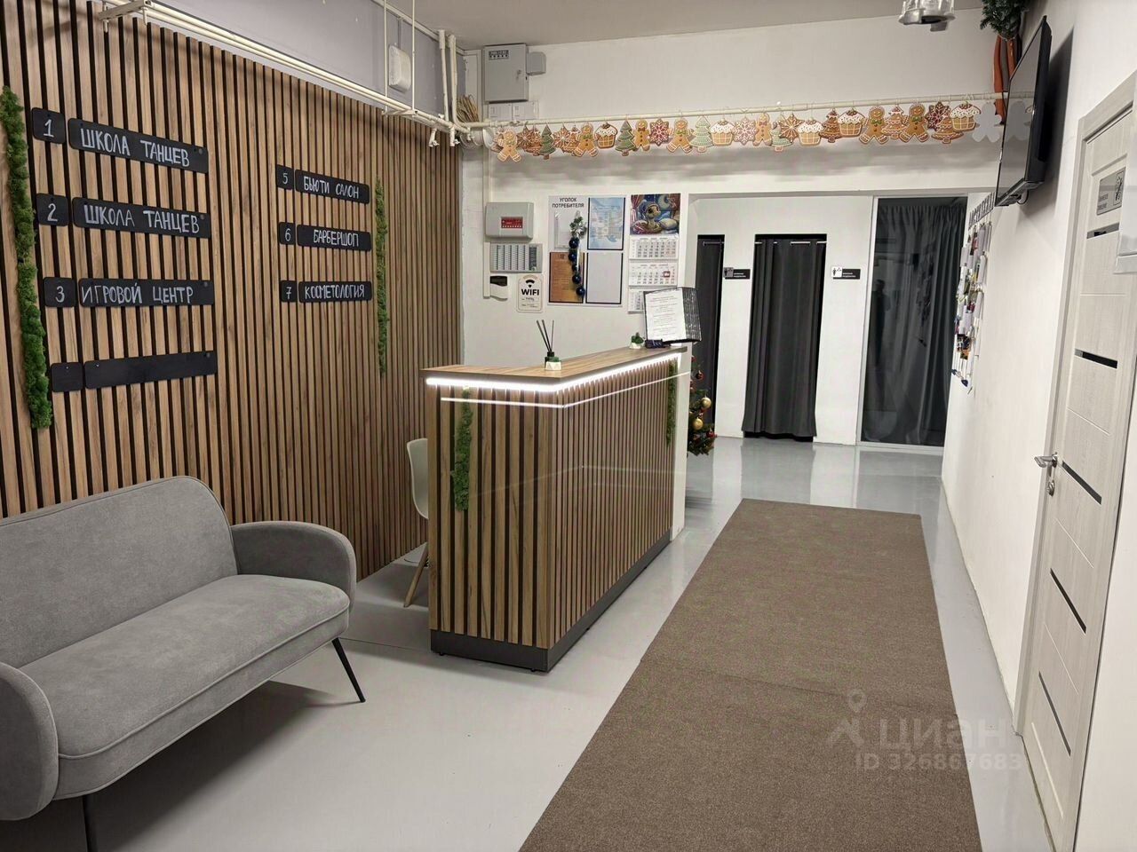 По соседству будут располагаться другие арендуемые пространства (школа танцев для детей, салон красоты, кафе и пр.).