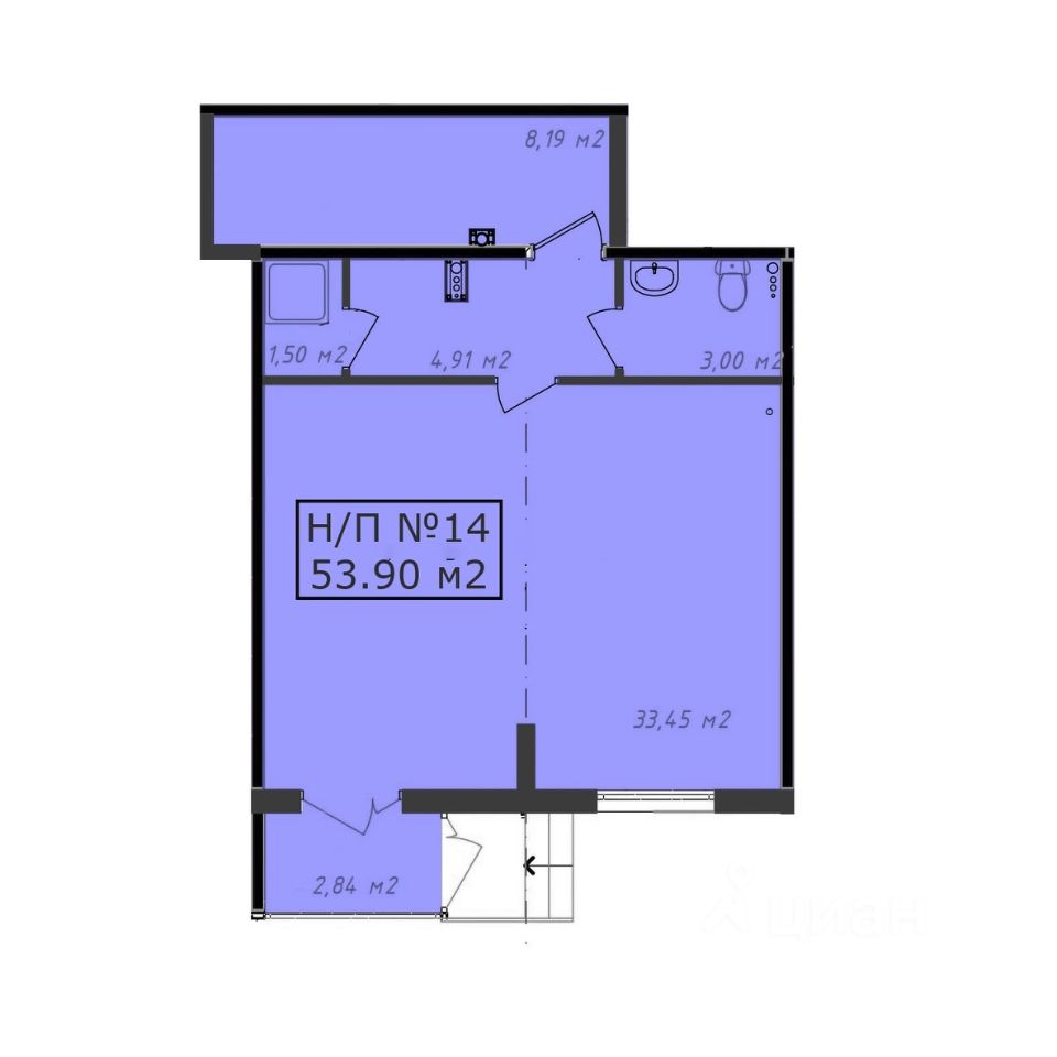 Свободная планировка 54 кв. м. ,отдельный вход, мокрая точка, вода, канализация, отопление, вентиляция отдельная от жилой, электрические роль ставни на окнах.