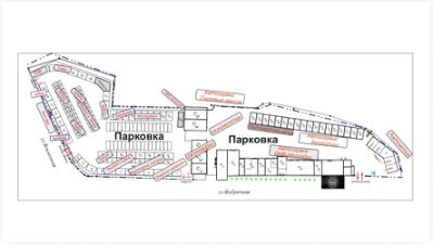 Парковка перед входом в павильоны — удобно для клиентов на авто.