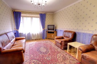 1 комната: раскладной диван-кровать, два кожаных кресла, телевизор.