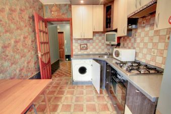 На кухне: холодильник, газовая плита с духовкой, электрический чайник, стиральная машина, телевизор, вся необходимая посуда для приготовления и приёма пищи.