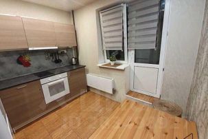 Кухня: Стол со стульями, варочная панель с духовкой, холодильник с морозилкой, микроволновая печь (СВЧ), электрический чайник, застеклённая лоджия для курения, вся необходимая посуда для приготовления и приёма пищи.