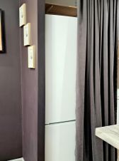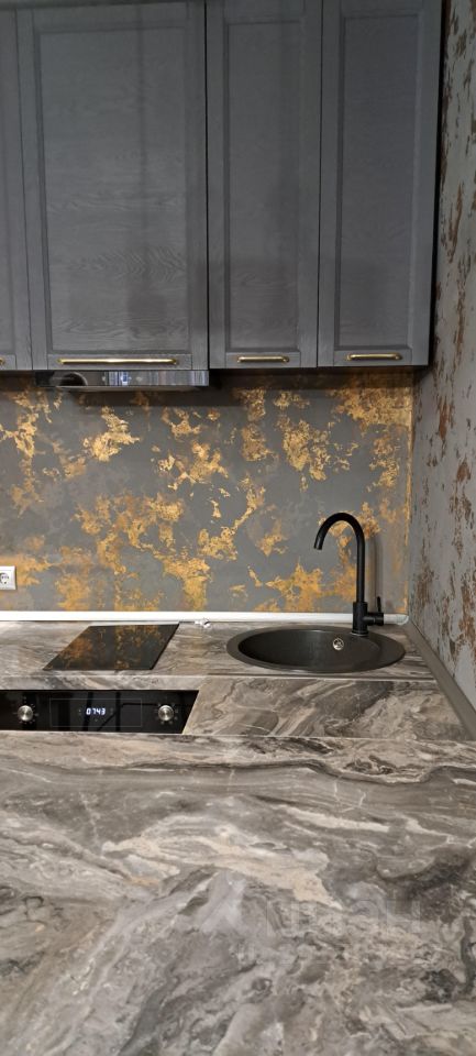 Квартира с дизайнерским ремонтом, полностью укомплектованная мебелью (кухонный гарнитур с бытовой и встраиваемой техникой: холодильник, духовой шкаф, вытяжка, варочная поверхность; стиральная машинка; диван; барные стулья. За счёт уникального светового сценария и различных фактур, в студии грамотно зонировано пространство- кухня и обеденная зона, рабочее место, зона отдыха и приёма гостей и достаточная многофункциональная система хранения- гардероб/лоджия. Окна во двор.