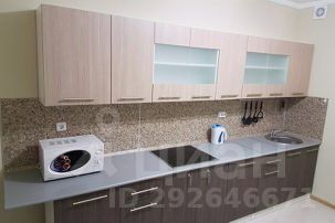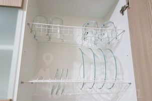 Кухня: Обеденный стол со стульями, холодильник, варочная панель, микроволновая печь (СВЧ), электрический чайник, телевизор, вся необходимая посуда для приготовления и приёма пищи.