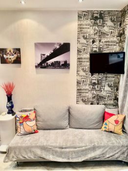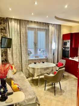 Кухня - Мария, сделана под заказ со встроенной техникой neff, раскладной диван, двуспальная кровать с ортопедическим матрасом, вместительные шкафы. Кондиционер, холодильник, плита, духовой шкаф, посудомойка, стиральная машина, 2 телевизора, проведен интернет и тв.