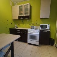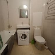 Чистая, светлая студия с косметическим ремонтом. Есть все необходимое для комфортного проживания: большой, двуспальный диван, телевизор. В ванной комнате - стиральная машина-автомат. На кухне двухкамерный холодильник, плита. микроволновая печь. Новый, благоустроенный микрорайон. Рядом множество магазинов, банк, рынок, гипермаркет. Хорошая транспортная доступность. До остановки автобусов 5 мин прогулочным шагом