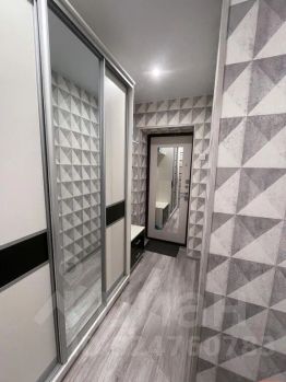 В коридоре: большой шкаф-купе с зеркалом, тумба для обуви, полноразмерное зеркало на двери.