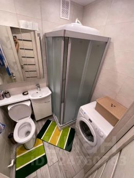 Ванная комната: душевая кабина, туалет, раковина, стиральная машина, фен, утюг, гладильная доска.