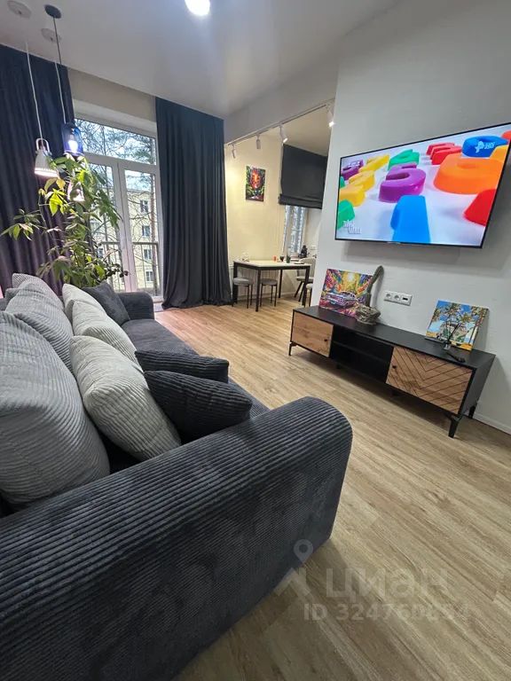 -Светлая и просторная гостинная ( 18 кв. М) с удобным диван-кроватью и смарттв.