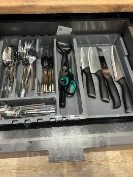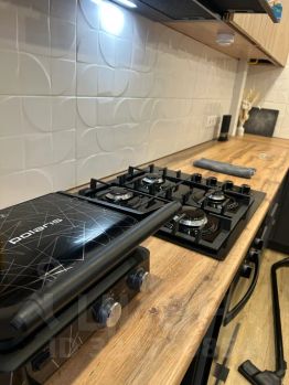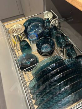 - Выделенная зона кухни (10 кв. М), где присутствует вся необходимая посуда и техника: