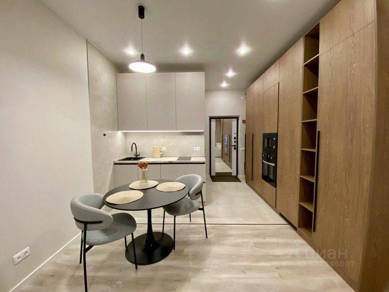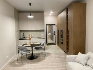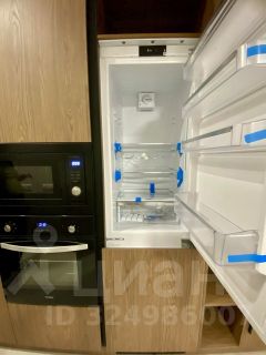 Кухня оборудована современной встроенной техникой и обеденным столом на три человека, также имеется все необходимое для комфортной жизни: сушка для белья, посуда, постельные принадлежности.