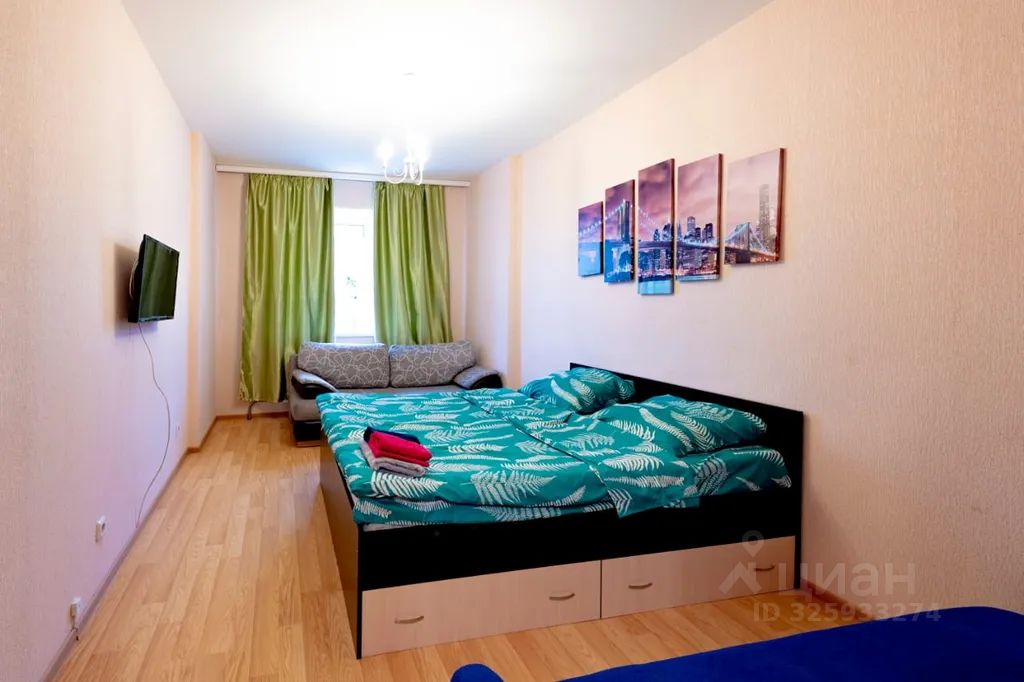 В квартире 8 спальных мест, двуспальная кровать и 3 двуспальных дивана.
