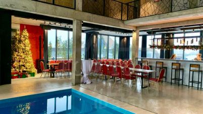 СПА-зона: большой теплый бассейн 5*7 м, глубина: 145-180 см, сауна со стеклянной стеной и видом на бассейн.