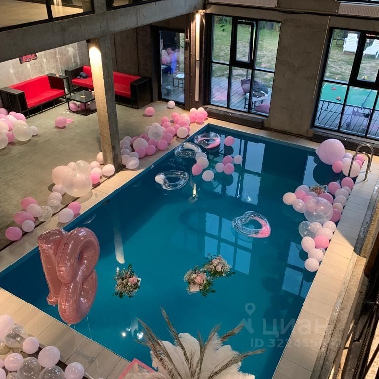 Дом площадью 700 квадратных метров находится в на берегу двух чистейших карьеров. В непосредственной близости находится сосновый лес. Участок 20 соток. Дом двух этажный с двумя большими веранадами. В доме 12 спален, 4 санузла и 2 душа. Сауна, большой теплый бассейн глубиной 145-180 см. Три больших обеденных стола, барная стойка, кухонный остров. 2 холодильника. Большая зона BBQ. Большой плазменный телевизор. Мощный профессиональный музыкальный центр управляемый через Bluetooth, с возможностью подключения любого диджейского пульта. Открытый балкон второго этажа с видом на бассейн. Комната для игры в покер. Пинг-Понг. Собственная площадка для пляжного волейбола. Великолепный вид с веранды второго этажа.