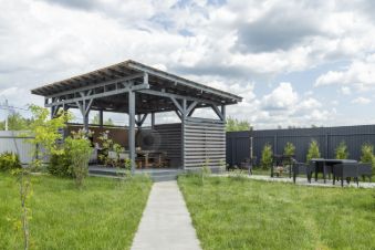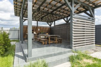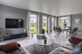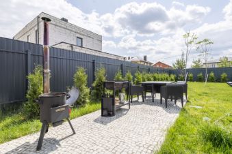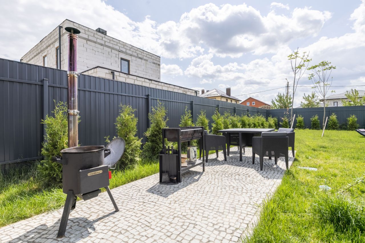 На первом этаже находится гостиная, с большим диваном и телевизором ,кухня с островом. Комната для ценителей покера . В правом крыле дома сауна и комната отдыха. Душевая кабина и санузел . Из развлечений есть колонка , покер.. Для ценителей шашлыка есть зона барбекю.