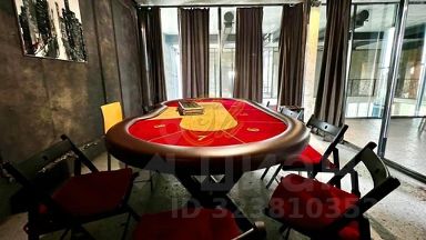 Барная стойка 4 метра длиной и открытый кухонный остров с духовкой, варочной панелью и раковиной. 2 больших обеденных стола.