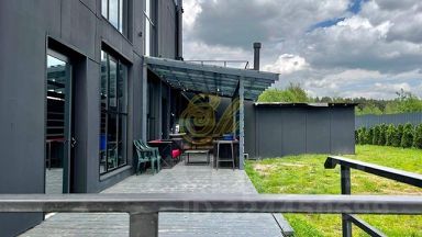 Выход на открытую уличную террасу размером 20х4 метра с великолепным видом на карьеры и лес.