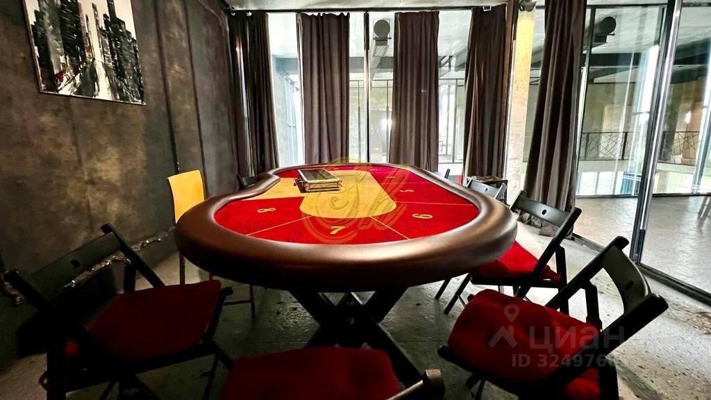 Барная стойка 4 метра длиной и открытый кухонный остров с духовкой, варочной панелью и раковиной. 2 больших обеденных стола.