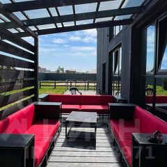Территория вокруг — это настоящий оазис приватности. Участок надежно скрыт от посторонних глаз густой живой изгородью из вечнозеленых туй. Здесь обустроены площадки для активных игр на песке, установлены удобные шезлонги для отдыха и подготовлена зона для парковки. Просторные открытые террасы и балконы с захватывающими видами на водную гладь станут лучшим местом для душевных бесед под открытым небом.