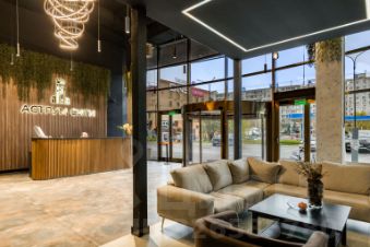 При входе вас встретят в просторном лобби с современным интерьером, уютной зоной ожидания.