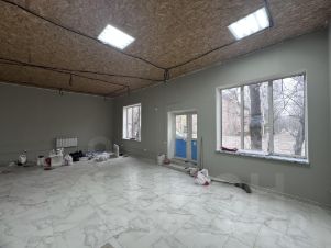 Разделено на 2 помещения : 48 м2 и 110 м2, сделан косметический ремонт, подведены и подключены все городские коммуникации (электричество, вода, канализация, отопление).