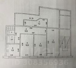 Общая площадь 74,6 метра, изолированные комнаты 17,6 метров, 13,2 метров и 12,4 метров, кухня 6,9 метров, санузел раздельный. В квартире косметический ремонт.