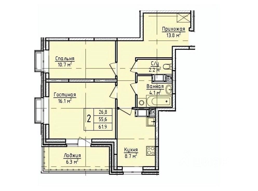 Продаётся 2-комнатная квартира в строящемся доме (Корпус 4), срок сдачи: IV-кв. 2026, общей площадью 61.9 кв.м., на 8 этаже. Расположение, транспортная доступность