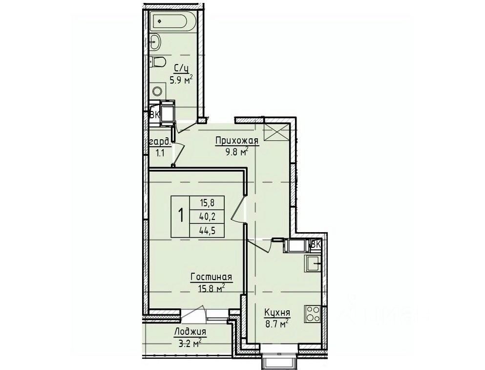 Продаётся 1-комнатная квартира в строящемся доме (Корпус 4), срок сдачи: IV-кв. 2026, общей площадью 44.5 кв.м., на 8 этаже. Расположение, транспортная доступность
