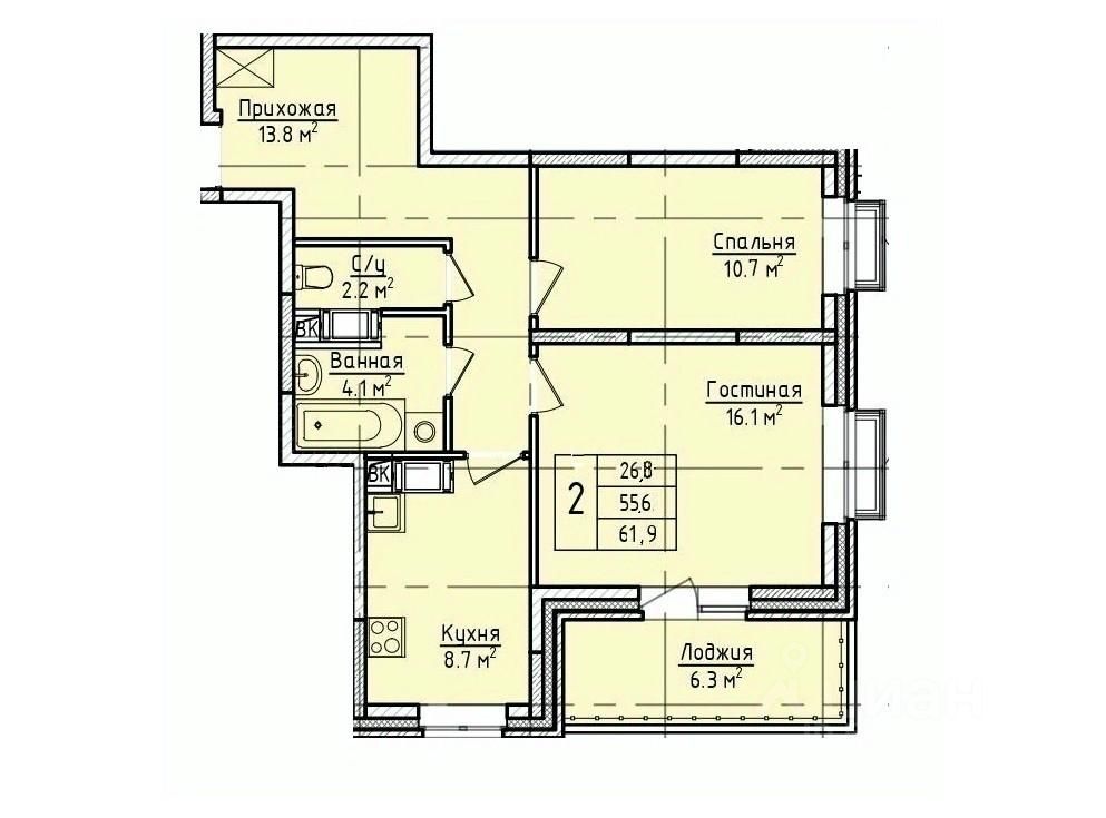 Продаётся 2-комнатная квартира в строящемся доме (Корпус 4), срок сдачи: IV-кв. 2026, общей площадью 61.9 кв.м., на 8 этаже. Расположение, транспортная доступность