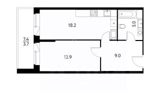 Общая площадь квартиры 46,1 метров ( без учета балкона ). Спальня 13.9 метров, функциональная и просторная кухня 18,2 метра. Прихожая 9 метров, просторный Санузел 5 метров.