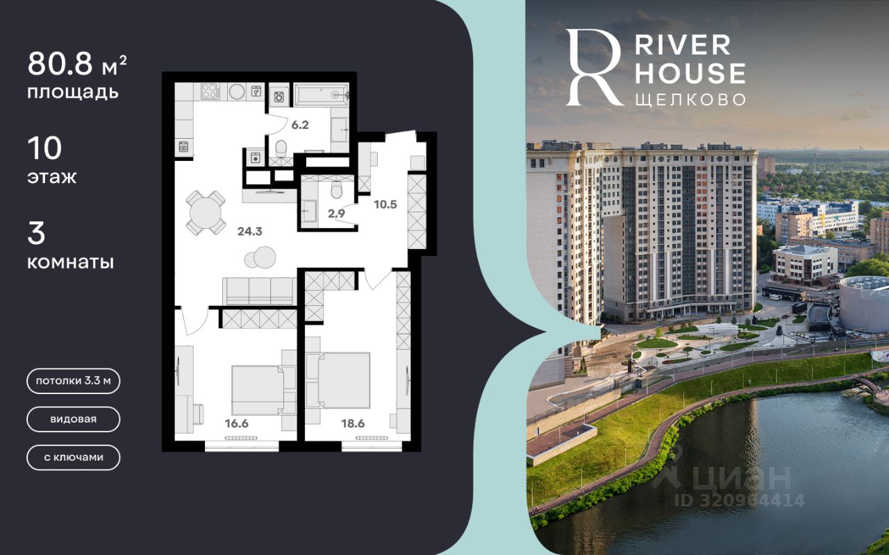 Просторная, светлая семейная квартира в жилом комплексе бизнес-класса RIVER HOUSE Щёлково! Семейная ипотека от 3.5%. Беспроцентная рассрочка. Индивидуальные дисконтные предложения. Дом сдан. Оформление в собственность. Ключи сразу после заключения договора купли-продажи. RIVER HOUSE Щёлково это изысканный жилой проект полноценного бизнес-класса с фокусом на качественное семейное проживание в самом центре города на набережной реки Клязьма. - Оригинальная архитектура, увеличенная площадь остекления, эксклюзивная вечерняя подсветка фасада. - Просторные семейные квартиры с высокими потолками 3.3 м в вариантах черновой, предчистовой и чистовой отделки. - Роскошные трехуровневые пентхаусы с открытыми террасами на кровле. - Лаунж-зона на кровле, где можно устроить уютный вечер с друзьями, отдохнуть и полюбоваться панорамными видами на город. - Вся необходимая инфраструктура и сервисы на первых двух этажах: детский сад, супермаркет, институт красоты, медицинский центр, стоматология, ПВЗ и многое другое. - В каждом подъезде 4 лифта один со спуском в паркинг, лобби с авторским дизайном, консьерж-сервисом и мягкой зоной ожидания. - Круглосуточная охрана, видеонаблюдение, бесключевая система доступа. - Двухуровневый подземный паркинг на 540 машино-мест и 260 кладовых. - Закрытый двор-парк без машин с ландшафтным дизайном, детскими и спортивными площадками, летним амфитеатром и собственным спуском к набережной. - Шаговая доступность ко всей инфраструктуре центра города: школы, детские сады, гимназии, кафе и рестораны, кинотеатр, перинатальный центр. - Три благоустроенных парка, в один из которых - Солнечные часы - можно спуститься со двора дома. RIVER HOUSE Щёлково это дом-впечатление и особый статус, которые останутся вашим детям и станут частью фамильной истории.