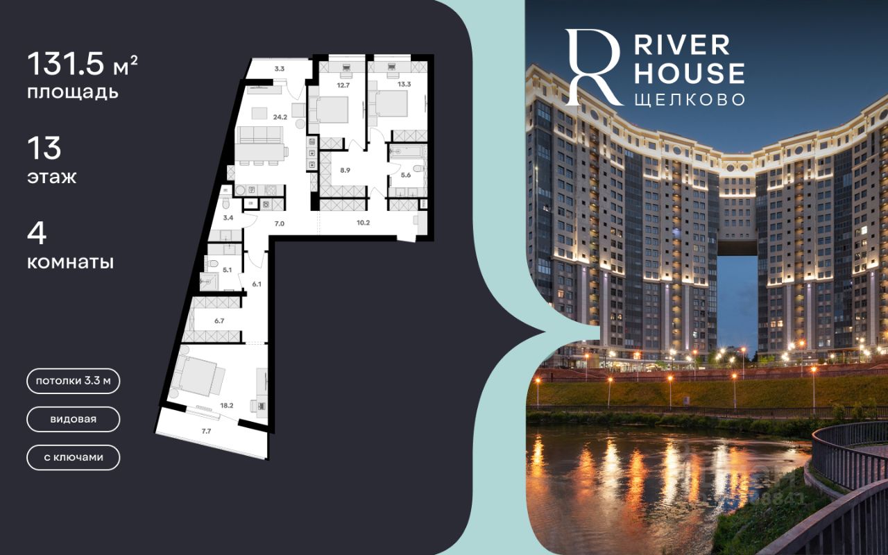 Просторная, светлая семейная квартира в жилом комплексе бизнес-класса RIVER HOUSE Щёлково! Семейная ипотека от 3.5%. Беспроцентная рассрочка. Индивидуальные дисконтные предложения. Дом сдан. Оформление в собственность. Ключи сразу после заключения договора купли-продажи. RIVER HOUSE Щёлково это изысканный жилой проект полноценного бизнес-класса с фокусом на качественное семейное проживание в самом центре города на набережной реки Клязьма. - Оригинальная архитектура, увеличенная площадь остекления, эксклюзивная вечерняя подсветка фасада. - Просторные семейные квартиры с высокими потолками 3.3 м в вариантах черновой, предчистовой и чистовой отделки. - Роскошные трехуровневые пентхаусы с открытыми террасами на кровле. - Лаунж-зона на кровле, где можно устроить уютный вечер с друзьями, отдохнуть и полюбоваться панорамными видами на город. - Вся необходимая инфраструктура и сервисы на первых двух этажах: детский сад, супермаркет, институт красоты, медицинский центр, стоматология, ПВЗ и многое другое. - В каждом подъезде 4 лифта один со спуском в паркинг, лобби с авторским дизайном, консьерж-сервисом и мягкой зоной ожидания. - Круглосуточная охрана, видеонаблюдение, бесключевая система доступа. - Двухуровневый подземный паркинг на 540 машино-мест и 260 кладовых. - Закрытый двор-парк без машин с ландшафтным дизайном, детскими и спортивными площадками, летним амфитеатром и собственным спуском к набережной. - Шаговая доступность ко всей инфраструктуре центра города: школы, детские сады, гимназии, кафе и рестораны, кинотеатр, перинатальный центр. - Три благоустроенных парка, в один из которых - Солнечные часы - можно спуститься со двора дома. RIVER HOUSE Щёлково это дом-впечатление и особый статус, которые останутся вашим детям и станут частью фамильной истории.