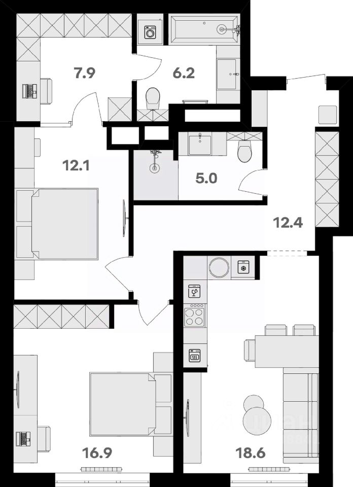 Предчистовая — остаётся установить сантехнику, розетки, двери и навести красоту: поклеить обои и уложить на пол покрытие
